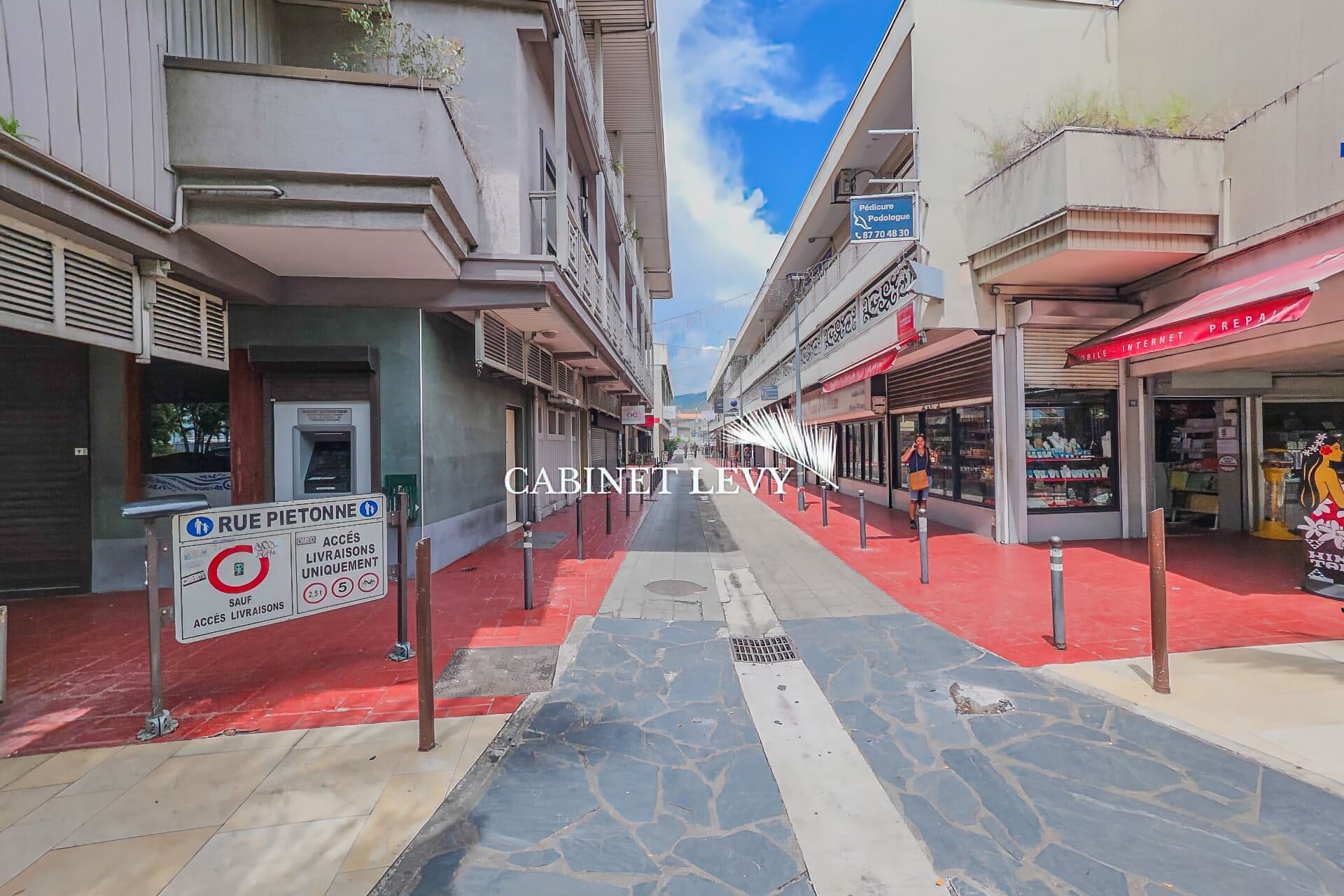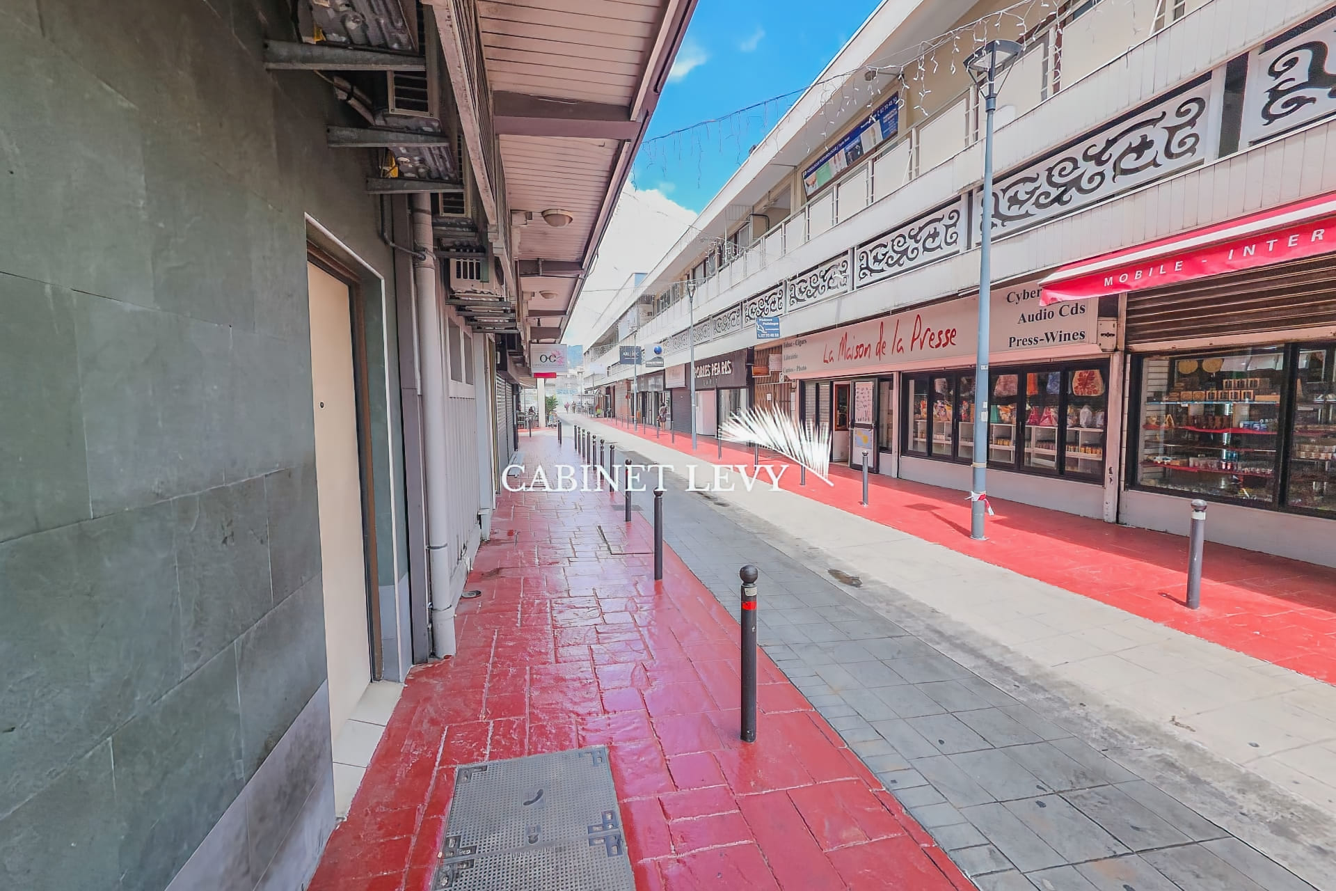 Emplacement Local situé dans le quartier du commerce de Papeete, sur une rue piétonne parallèle au boulevard Pomaré. Voisinage de boutiques (optique, presse, bijouterie, prêt-à-porter). Accès livraisons autorisé pour les véhicules jusqu'à 2,5 tonnes. Quai d'embarquement des bateaux de croisière et marché de Papeete à 5 minutes à pied. Pas de stationnement attitré, parkings publics à proximité.