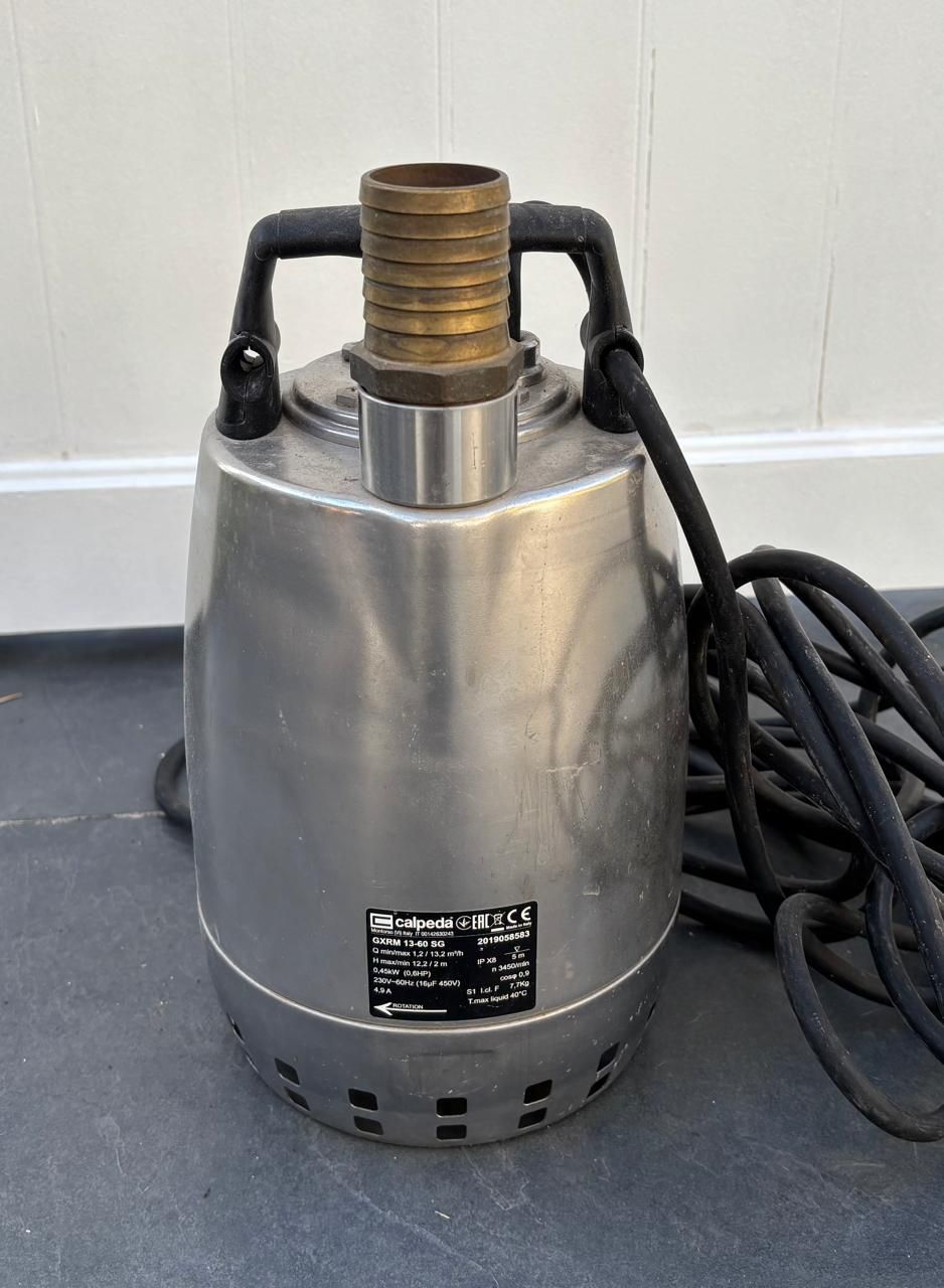 Pompe de drainage professionnelle d'eau sale submersible en acier inoxydable Calpeda GXRm 13-SG (sans interrupteur à flotteur), avec câble de 5 m et moteur 0,45 kW 240V 1Ph 50Hz.