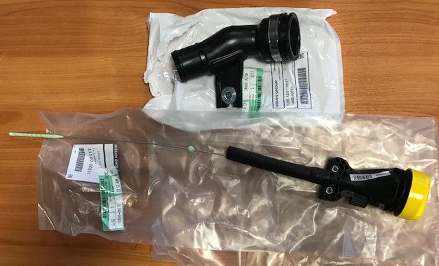 1 jauge huile moteur avec bouchon remplissage et son support guide