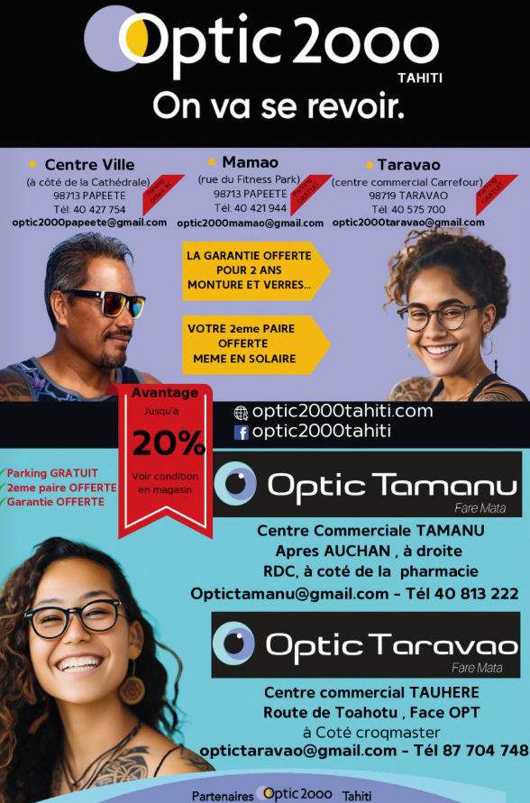 - Optic Taravao - Taravao (en face Opt et Hyper U) Tél: 87 70 47 48