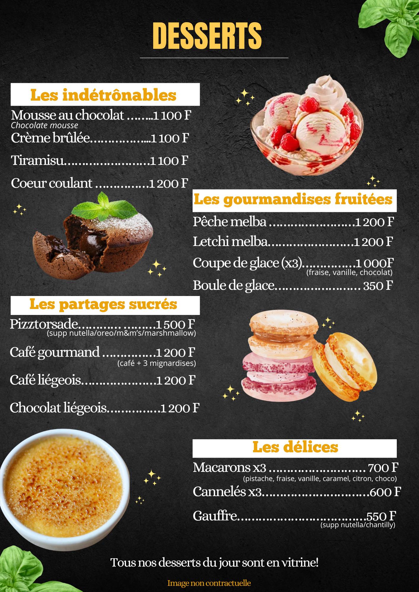 L’ambiance chaleureuse et décontractée de notre établissement vous invite à déguster vos plats sur place ou à emporter. Pour les plus gourmands, n’oubliez pas de terminer votre repas avec nos desserts maison, parfaits pour une petite douceur !