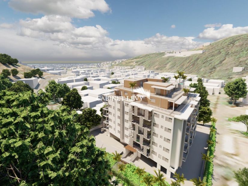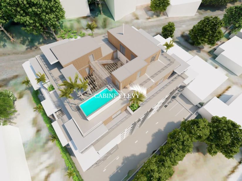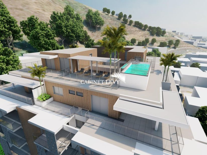 Immeuble avec parking en sous-sol et en extérieur + 5 étages + 6ème étage avec 4 attiques et la piscine sur le toit.
